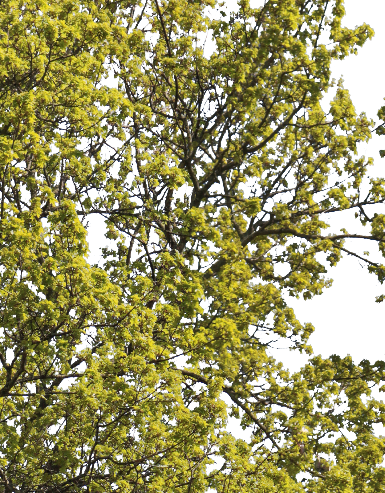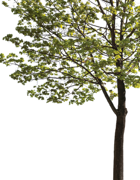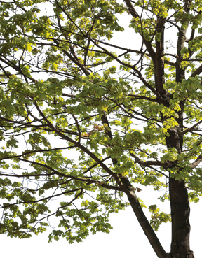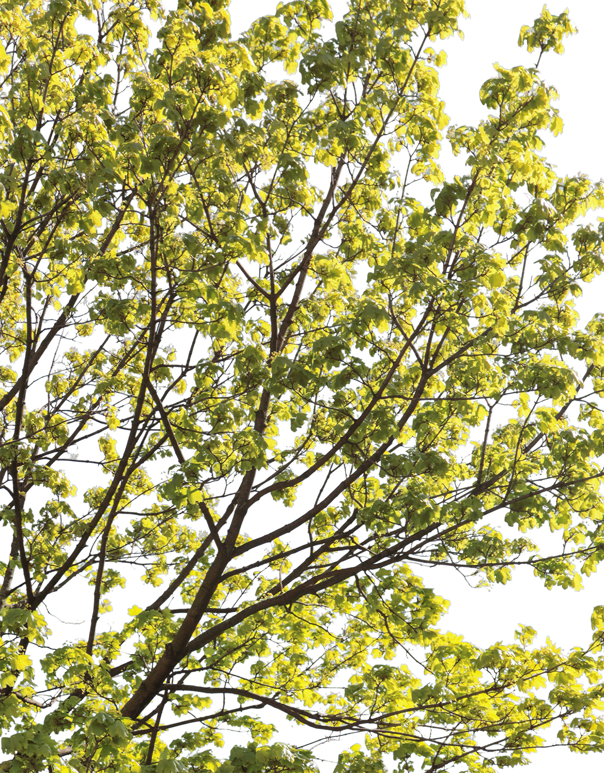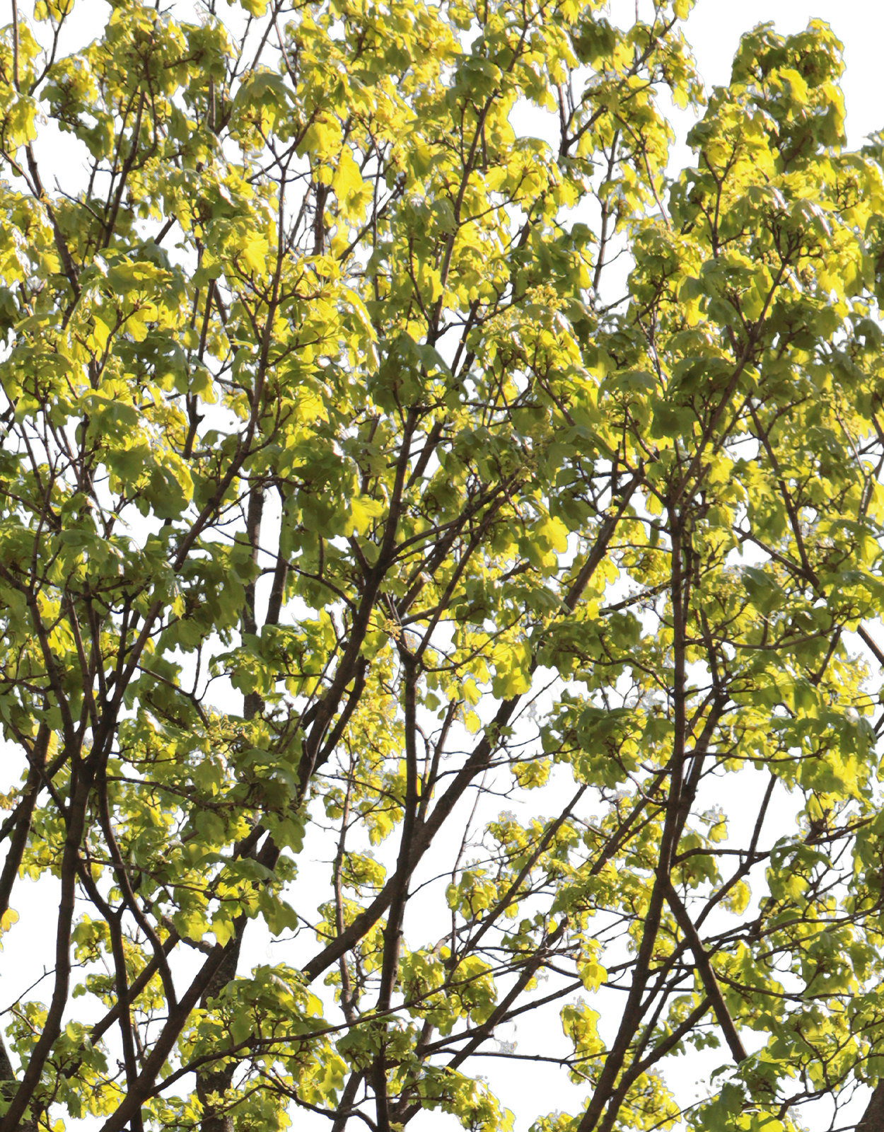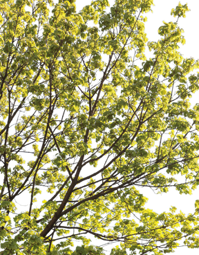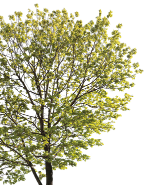 Large maple tree in spring with new tender leaves and delicate foliage.