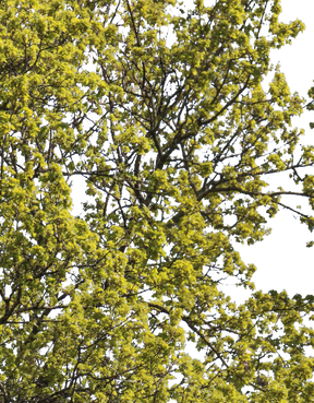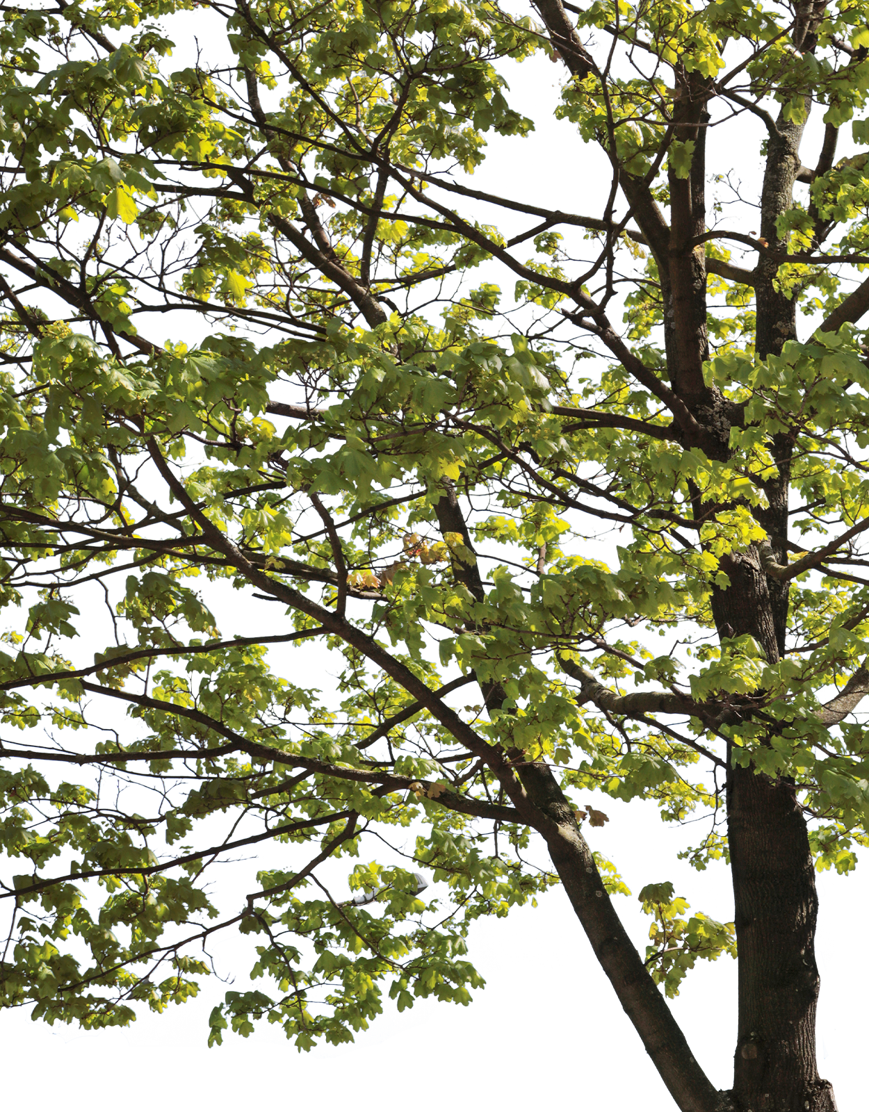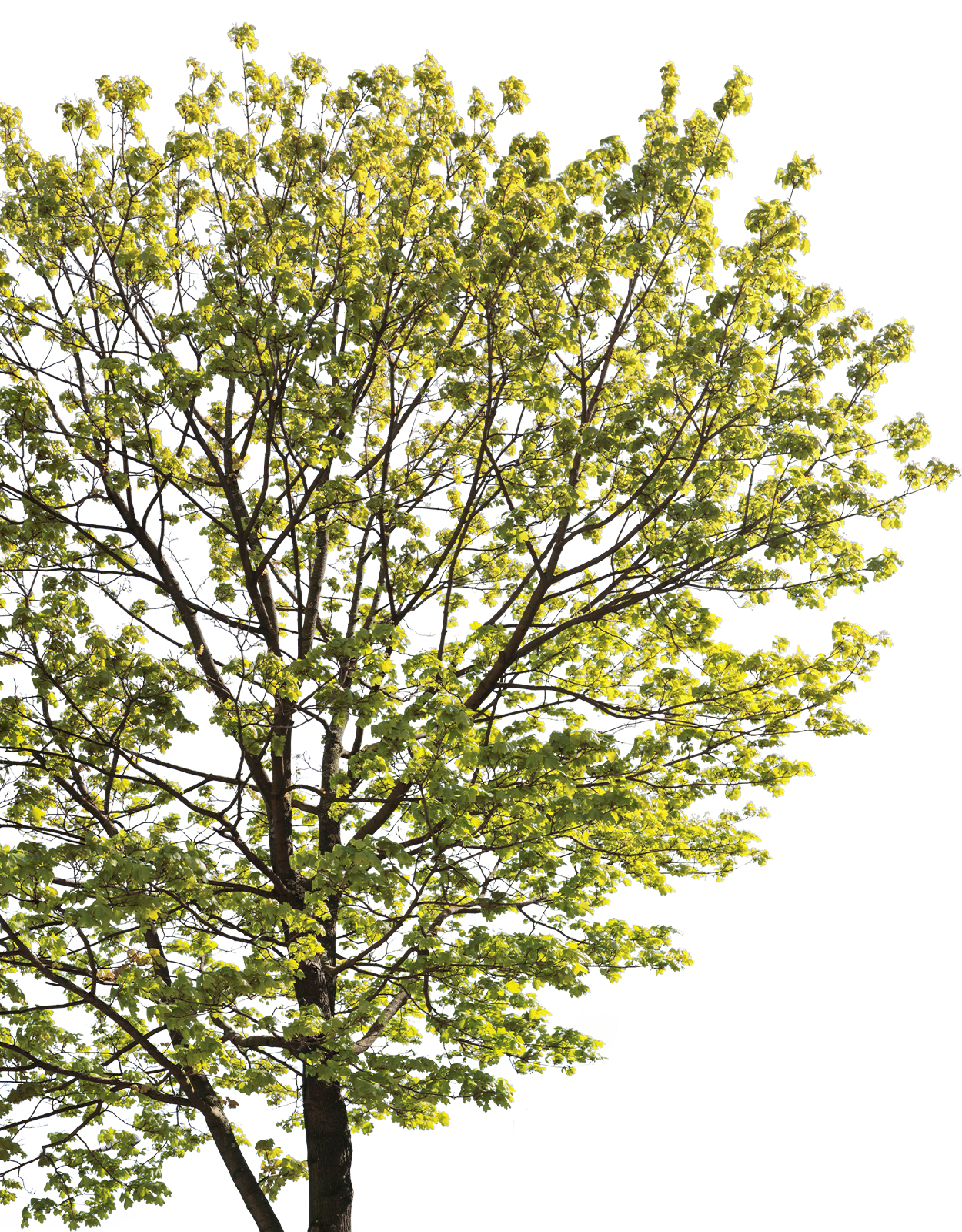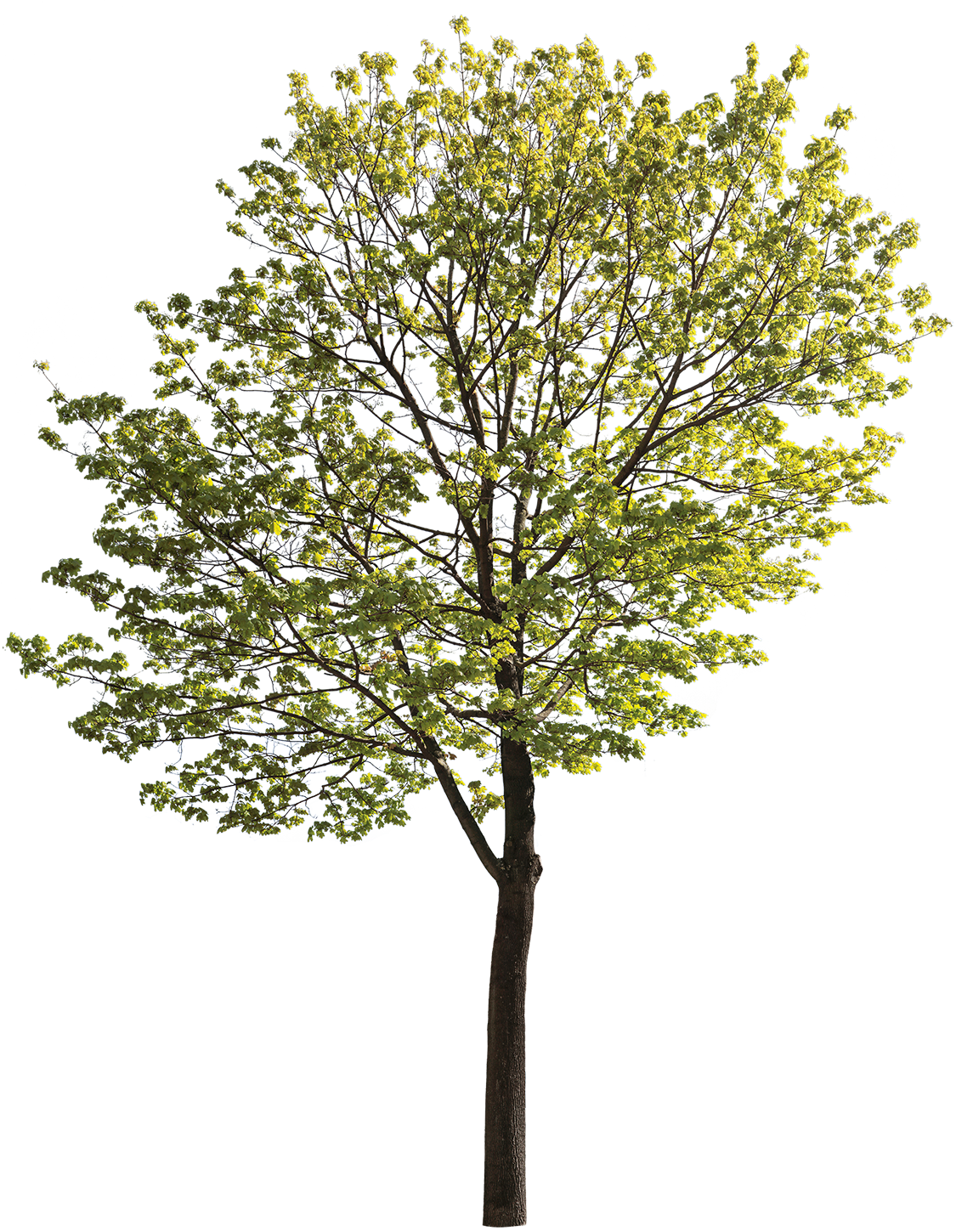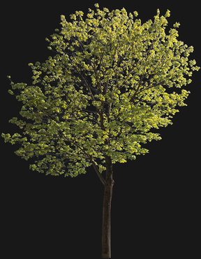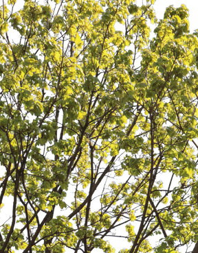 Large maple tree in spring with new tender leaves and delicate foliage.